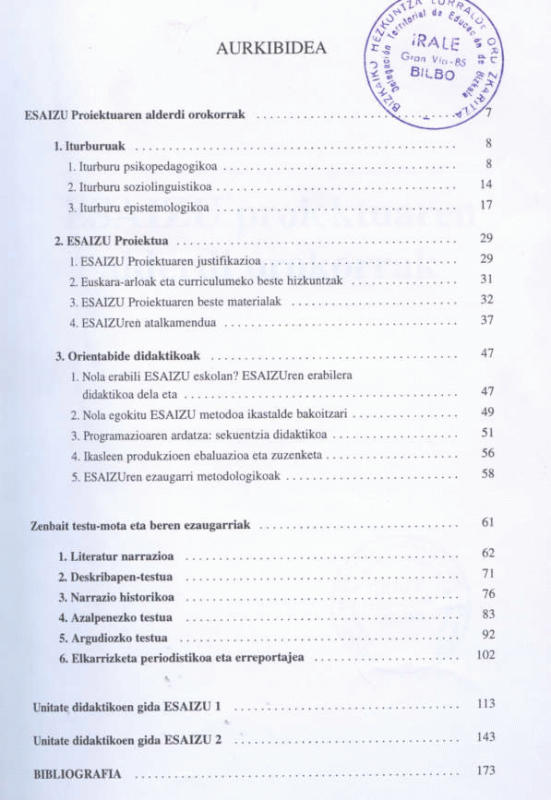 Esaizu : Euskal Hizkuntza eta Literatura: DBH 1-2 . Irakaslearen gida didaktikoa / Resu Abasolo ...[ et al.]