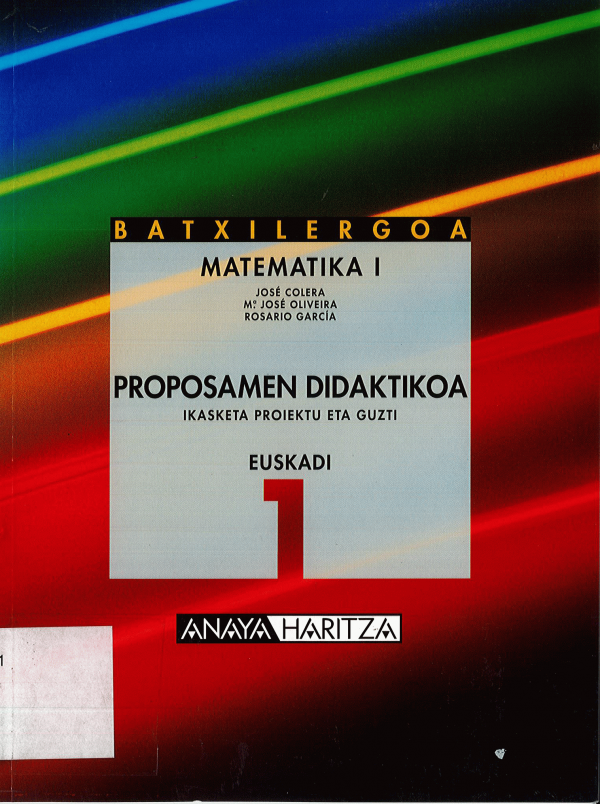 Matematika I : Batxilergoa 1 : proposamen didaktikoa [Euskadi] / José Cólera , Mª José Oliveira, Rosario García ; itzulpena, Itziar Bilbao