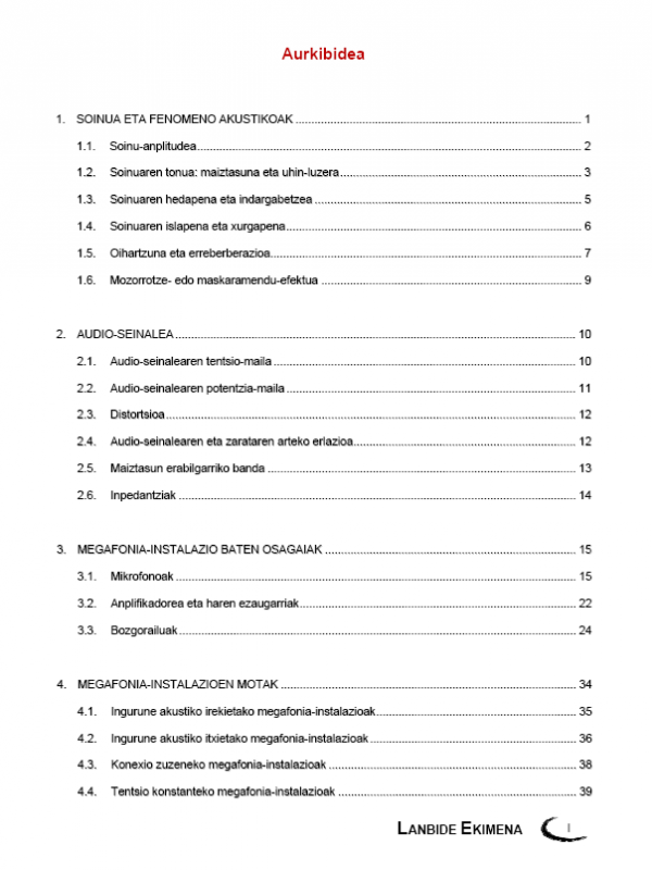 - Megafonia eta sonorizazio instalazioak (Modulua)