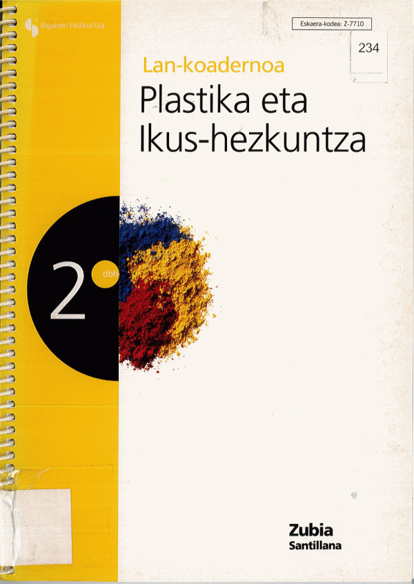 Plastika eta Ikus-hezkuntza : Lan koadernoa: DBH 2 / Testuak: Mikel Zabala... [et al. ]; Hizkuntza- egokitzapena: Ainara Azkue ; Edizioa: Ainhoa Basterretxea ; Edizio zuzendaritza: Estrella Molina Gete, Alberto Martín Baró, Joseba Santxo ; Irudiak: Malena Fuentes
