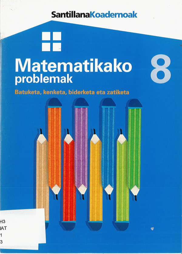 TestuaSerie(ak): Matematikako problemak (Zubia Santillana) ; ; 8 | Santillana koadernoakPublication details: Etxebarri : Zubia, L.G. 2003Deskribapen fisikoa: 24 or. : z.-b. ir. ; 27 cmISBN: - 84-8147-606-4