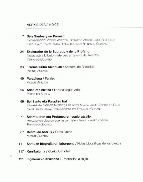 Eliztarrak-Mundutarrak : [erakusketa] : Erremelluriko sainduak, paradisua eta beste lan batzuk: = Sagrado-Profano : Santoral de Remelluri, Paraíso y otras obras / [testuak, Bernardo Atxaga, Fernando Golvano; euskarazko testuak, Gotzon Egia, Joseba Erkizia]