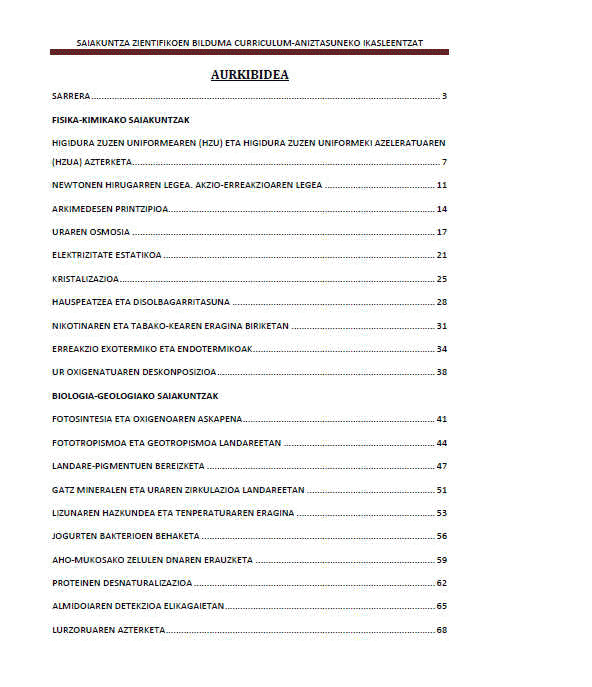Saiakuntza-zientifikoen bilduma dugu honakoa, DBHko bigarren zikloan lantzen diren zenbait kontzeptu zientifiko ulergarriagoak egiteko asmoarekin.