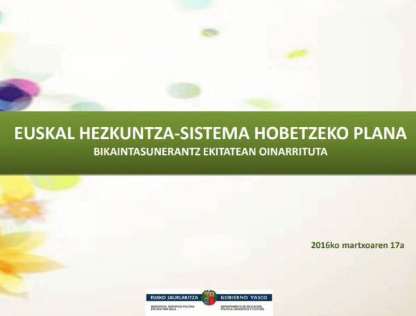 Euskal Hezkuntza-sistema hobetzeko plana : bikaintasunerantz ekitatean oinarritua [Heziberri 2020] [Interneteko baliabidea]