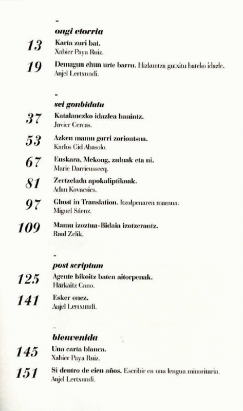 Idazle zein itzultzaile baten lan-tresna-hizkuntza-kinka larrian edo osasuntsu egotea ez da muntarik gabeko auzia ez idazlearentzat ez bere lanarentzat. Zer-nolako eragina ote du tradizio oparo batetik idazteak edo ia tradiziorik gabeko urritasunetik; gauza bera ote da aspaldi aritzea; munta bera ote du aspaldi handiko ofizialtasunetik edo ofizialtasun berri eta urri batetik jarduteak. Berdin begiratzen ote zaio munduari hizkuntz harremanen hegemoniatik edo diglosiaren eraginpetik...Mundua globalizazioaren bidean, hizkuntza gutxituetako literaturak ere bertan. Mundua pentsatzen, mundua esaten. Gaur. Ehun urte barru, auskalo.