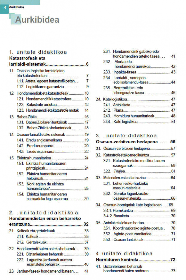Liburu honetan, Osasun-larrialdiak heziketa-zikloko Osasun- logistika larrialdietan modulurako curriculumean ezarritako edukiak lantzen dira.