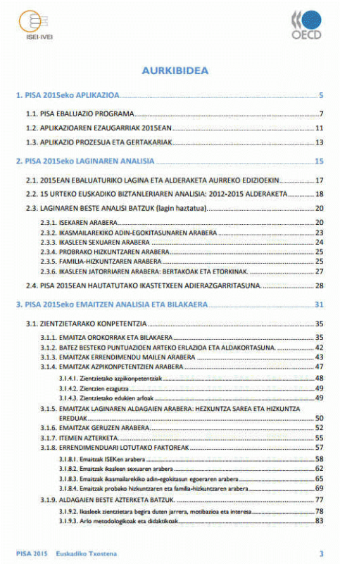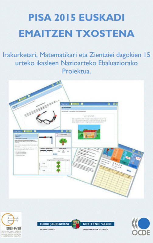 PISA 2015 Euskadiko Txostena : Irakurketari, Matematikari eta Zientziei dagokien 15 urteko ikasleen Nazioarteko Ebaluaziorako Proiektua [Interneteko baliabidea] / [Egileak: Francisco Luna, Mª Dolores Damborenea eta Joserra Ugarriza. Laguntza teknikoa: Eduardo Ubieta]