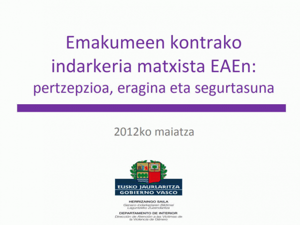 Emakumeen kontrako indarkeria matxista EAEn [Interneteko baliabidea] : pertzeptzioa, eragina eta segurtasuna / Genero-Indarkeriaren Biktimei Laguntzeko Zuzendaritza