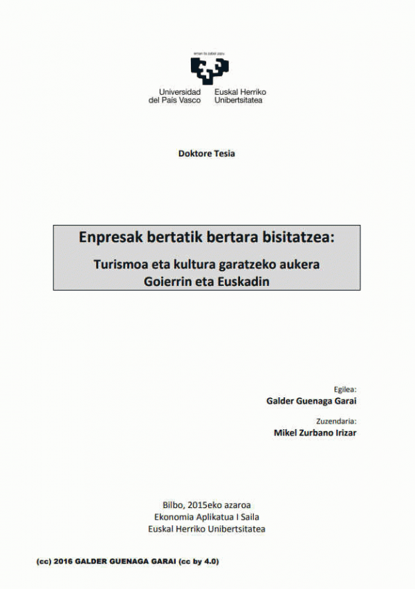Enpresak bertatik bertara bisitatzea : Turismoa eta kultura garatzeko aukera Goierrin eta Euskadin / Guenaga Garai, Galder ; zuzendaria, Zurbano Irizar, Mikel [Interneteko baliabidea]
