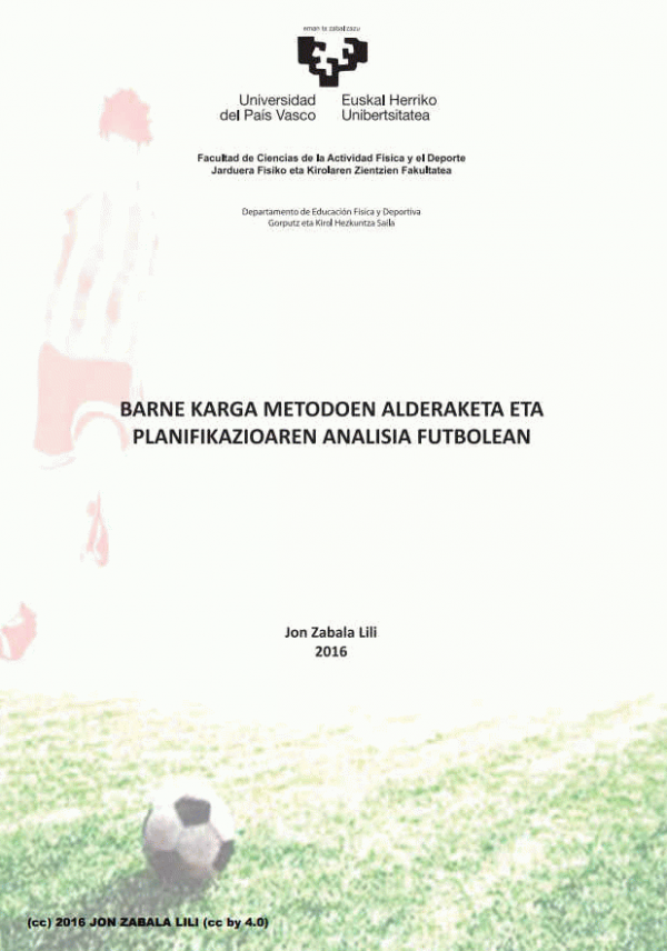 Barne karga metodoen alderaketa eta planifikazioaren analisis futbolean / Iraia Bidaurrazaga Lopez de Letona ; zuzendaria,on Zabala Lili ; Zuzendariak, Cristina Granados Domínguez, Asier Zubillaga Zubiaga [Interneteko baliabidea]