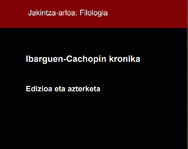 Ibarguen-Cachopín kronika : edizioa eta azterketa [Interneteko baliabidea] / Julen Arriolabengoa Unzueta ; zuzendaria, Joseba Andoni Lakarra Andrinua