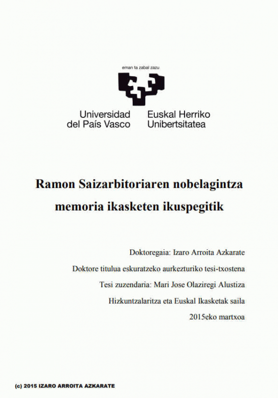 Ramon Saizarbitoriaren nobelagintza memoria ikasketen ikuspegitik [Interneteko baliabidea] / Izaro Arroita Azkarate ; zuzendaria, Mari Jose Olaziregi Alustiza