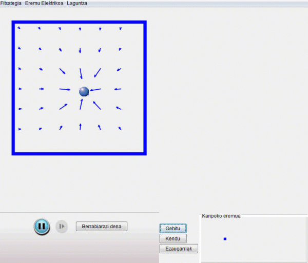 Elektrizitatea, karga elektrikoak, eremu elektrikoa lantzeko simulazio interaktiboa.