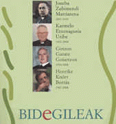[1. libx.] . Joseba Zubimendi Martiarena (1897-1939) / Inazio Mujika Iraola -- [2. libx.] . Karmelo Etxenagusia Uribe (1932-2008) / Igone Etxebarria -- [3. libx.] . Gotzon Garate Goiartzun (1934-2008) / Miel A. Elustondo -- [4. libx.] . Henrike Knörr Borràs (1947-2008) / Garikoitz Knörr