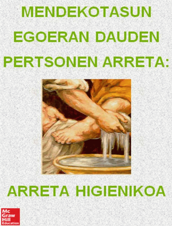 TestuaSerie(ak): Lanbide ekimena (Hezkuntza Saila)Publication details: [S.l.] : Lanbide Ekimena, 2018Deskribapen fisikoa: 142 +119 or. ; Word artxiboa +PDF artxiboaGaia(k): Generoa/Forma:Sareko errekurtsoak:Adina / Maila: Gizakion beharrizanetako bat da larruazala garbi eta babestua izatea. Beharrizan hori asetzeko, dutxatu edo bainatu egiten gara, edo gorputzeko atal txikiagoak garbitzen ditugu (eskuak, ilea, genitalak, etab.). Pertsona gehienok arazo barik eta modu autonomoan burutzen ditugu ekintza horiek. Mendekotasun-egoeran dauden pertsonek, ordea, muga fisikoak, psikikoak edota intelektualak izaten dituzte. Hori dela eta, haien eguneroko bizitzako ekintzak burutzeko gaitasun batzuk murriztuta egoten dira, eta beste pertsona baten/batzuen laguntza behar izaten dute. Laguntza hori emateaz arduratuko den profesionala mendekotasun egoeran dauden pertsonen arretarako teknikaria (MEPAT) izango da.