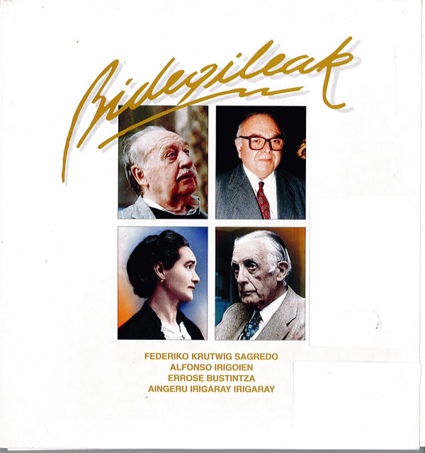 [1. libx.] ; Federiko Krutwig Sagredo (1921-1998) / Xabier Kintana [2. libx.] ; Alfonso Irigoien (1929-1996) / Xabier Kaltzakorta [3. libx.] ; Errose Bustintza (1899-1953) / Xabier Kaltzakorta [4. libx.] ; Aingeru Irigaray Irigaray (1899-1983) / Enrike Diez de Ulzurrun Sagalá