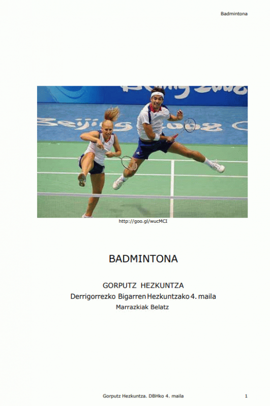 Badmintona : [Unitate didaktikoa - DBH] [Interneteko baliabidea] / Berritzegune Nagusia