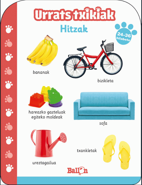 Urrats txikiak bildumako izenburu bakoitza txikienen garapena urratsez urrats jarraitzeko dago diseinatuta. Urrats txikiak bildumak hizkuntza barneratzen laguntzen du eta zure seme-alabei euren eguneroko gauzak ezagutzen laguntzen die.