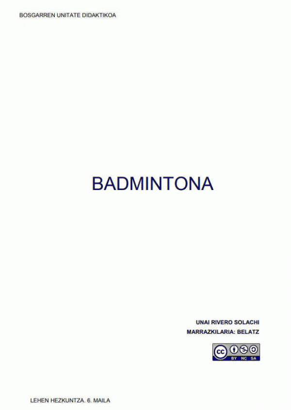 Badmintona [Interneteko baliabidea] : Gorputz Hezkuntza : Lehen Hezkuntza 6 / egilea, Unai Rivero ; marrazkilaria, Belatz