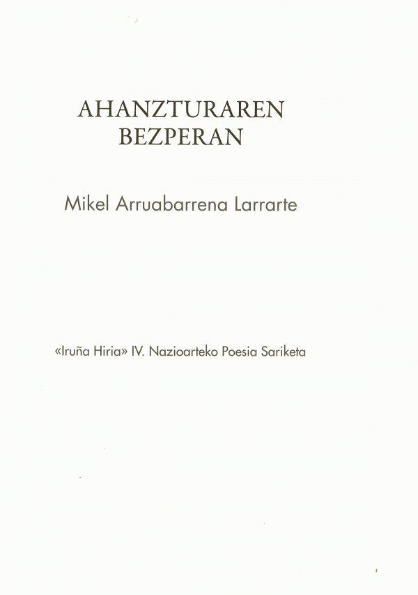 Ahanzturaren bezperan / Mikel Arruabarrena Larrarte