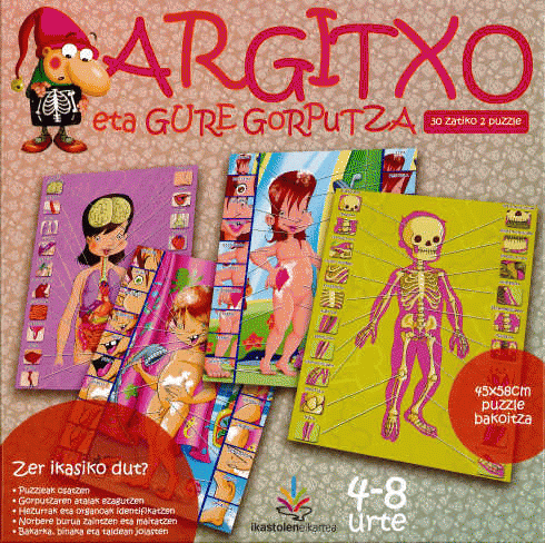 Argitxo eta gure gorputza [Puzzlea] / proiektuaren arduraduna, Belen Baztarrika ; koordinazioa, Nerea Arregi ; diseinua eta argazkiak, Iker Torres ; ilustrazioak, Enrike Morente ; aholkularitza, EHIko HH-LH taldea ; hizkuntza-aholkularitza, Juanjo Respaldiza]