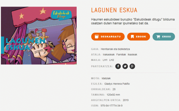 Lagunen eskua [Interneteko baliabidea] / testua, Gladys Herrera Patiño; marrazkiak, Kaia