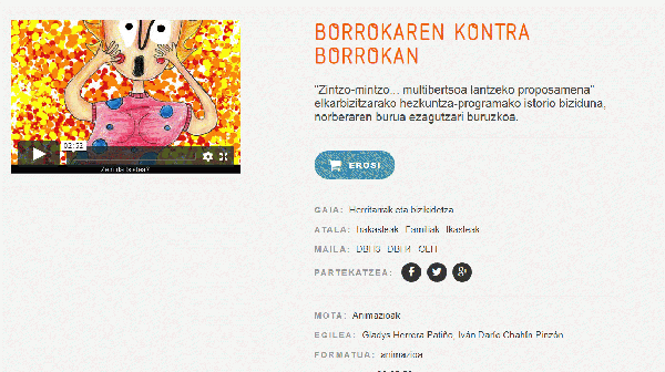 FilmHizkuntza: baq Serie(ak): Zintzo mintzo... multibertsoa lantzeko proposamenaPublication details: Bilbo : Edex, 2009Deskribapen fisikoa: Bideoak (mp3) ; 2,56 minISBN: - 978-84-9726-554-6