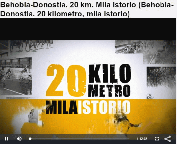Behobia-Donostia : [Interneteko baliabidea - Bideoa] 20 km, mila istorio / zuzendaria eta errealizadorea, Xuban Intxausti ; ETBko produktorea, Elena Gozalo ; produzio exekutiboa, Jose Felipe Auzmendi ; On Time-ek ETBrentzat ekoitzitako saioa