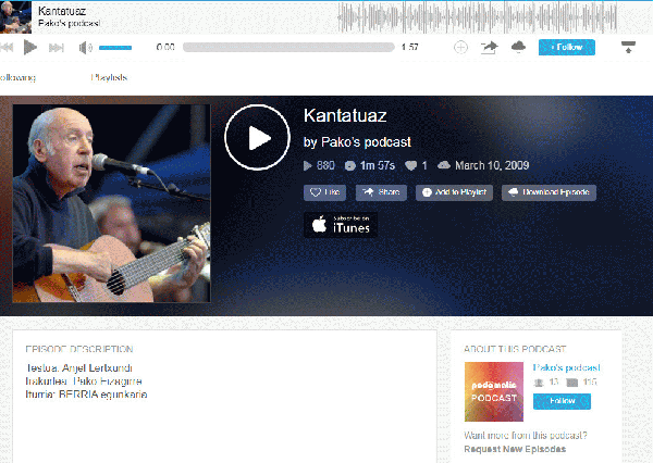 Kantatuaz [Interneteko baliabidea - Audioa] / iturria, "Berria" egunkaria (Anjel Lertxundi) ; irakurlea, Pako Eizagirre ; grabazioaren egilea, Pako Eizagirre
