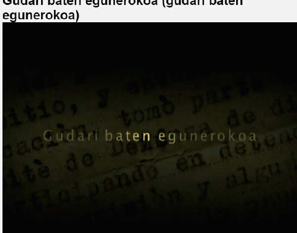 Gudari baten egunerokoa [Interneteko baliabidea - Bideoa] / zuzendariak, Javier Gutierrez, Jonan Hernandez ; errealizadorea, Javier Gutierrez ; erredakzioa, Unai Ugarte ; laguntzailea, Sancho de Beurko elkartea