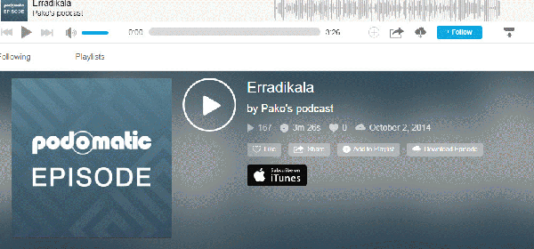 Erradikala [Interneteko baliabidea - Audioa] / iturria, "Diario de Noticias" (Karmele Jaio) ; irakurlea, Pako Eizagirre ; grabazioaren egilea, Pako Eizagirre