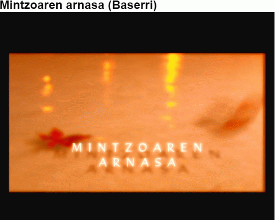 FilmSerie(ak): Mintzoaren arnasa (EITB) ; ; 9Publication details: [S.l.] : AEM : EITB, 2011Deskribapen fisikoa: Baliabide elektronikoa (44 min) : soinuduna, kolGaia(k): Generoa/Forma:Sareko errekurtsoak:Adina / Maila: 90eko hamarkadan Xabier Letek egindako bertso antologia berreskuratu du Euskal Telebistak. Atal honetan Errezilgo Baserri bertsolariaren bertsoak kantatuko ditu.