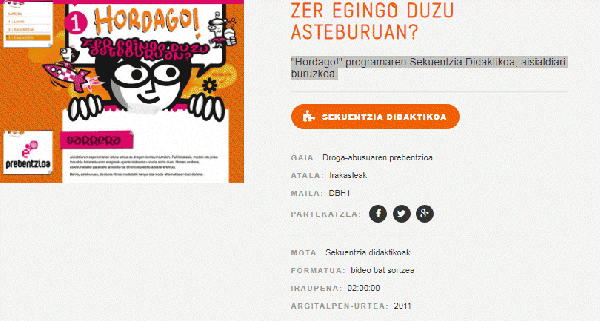 "Hordago!" programaren Sekuentzia Didaktikoa, aisialdiari buruzkoa.Aisialdiaren esperientziak lotura estua du drogen kontsumoarekin. Publizitateak, modek eta jolas-industria boteretsuaren eraginak «gazte izatearen» irudia sortu dute. Horren arabera, asteburuetako gauetako astialdia da lehentasunezko aisialdi-eremua.Baina, asteburuan, denbora librea modetatik kanpo eta modu alternatiboan bizi daiteke.