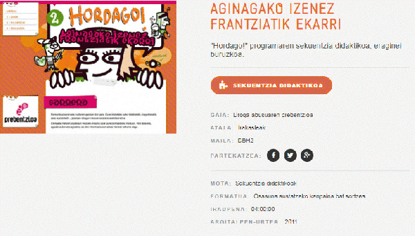 Aginagako izenez Frantziatik ekarri (sekuentzia didaktikoa) [Interneteko baliabidea - Webgunea] / Edex