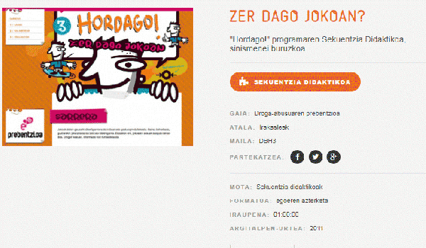 "Hordago!" programaren Sekuentzia Didaktikoa, sinismenei buruzkoa.Jokoek duten gauzarik dibertigarriena da irabazi edo galdu egin daitekeela. Baina, beharbada, guztiarekin jokatzea ez da beti oso dibertigarria. Edozelan ere, jokoaren arauak ezagutu behar dira. Drogen kasuan, informazio hori funtsezkoa da.