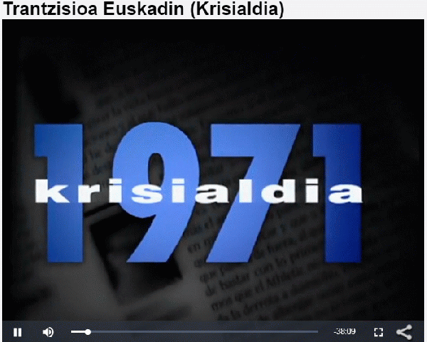 Krisialdia [Interneteko baliabidea - Bideoa] / zuzendaritza, Koldo San Sebastian ; errealizazioa, Jabi Elortegi ; erredakzioa, Anaitze Agirre ... [et al.] ; produkzio eragilea, Edu Barinaga ; produkzioa, Asier Bilbao, Oiane Bengoa ; lokuzioa, Joxe Felipe Auzmendi ; ETBko produktore ordezkaria, Santi Uriarte ; Baleukoren ekoizpen bat ETBrentzat