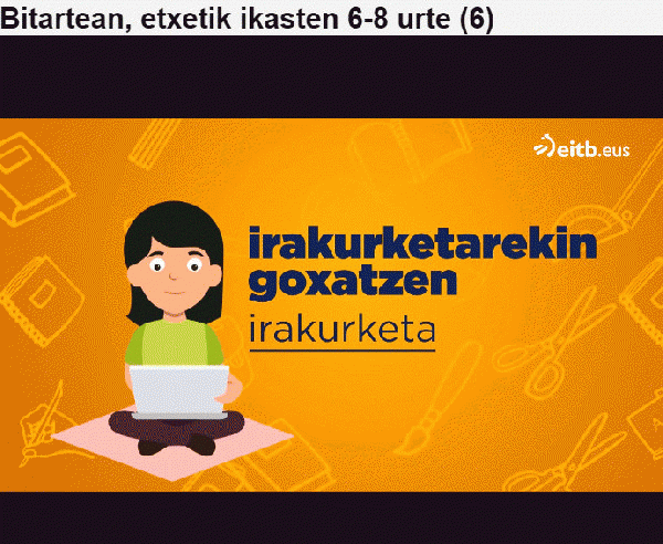 Ikasleak etxean ditugun egoera berezi honetan, ETB3 kateak Etxetik Ikasten saioa emititzen hasi da. Euskara ikasgaiako klaseak. Ahozkotasuna lehenestuko da. Hitz jolasak, aho korapiloak, ikerketa proposamenak, errezetak, komikiak sortu, ipuinak sortu, bitxikeriak... Idatzizko adierazpena landu, probokatu. Atal honetan: perpausa eta deskribapena.
