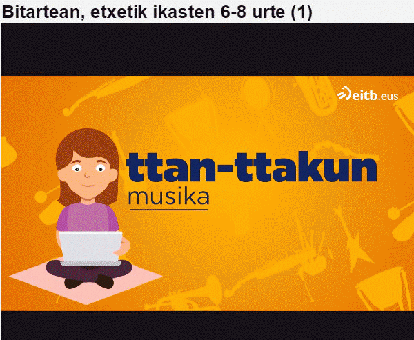 Bitartean etxetik ikasten : Aniztasuna I : ttan-ttakun: musika [6-8 urte] / aurkezleak, Ander Larrauri, Xabi Monge; ekoizlea, EITB [Interneteko baliabidea - Bideoa] : 2020ko apirilak 30