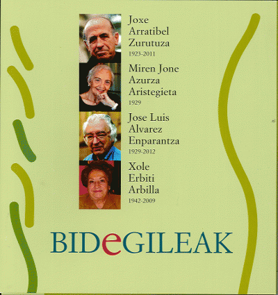 [1. libx.] . Joxe Arratibel Zurutuza (1923-2011) / Miel A. Elustondo -- [2. libx.] . Miren Jone Azurza Aristegieta (1929-) / Elixabete Garmendia -- [3. libx.] . Jose Luis Alvarez Enparantza "Txillardegi" (1929-2012) / Jose Luis Ormaetxea Lasaga "Txipi" -- [4. libx.] . Xole Erbiti Arbilla (1942-2009) / Alberto Barandiaran