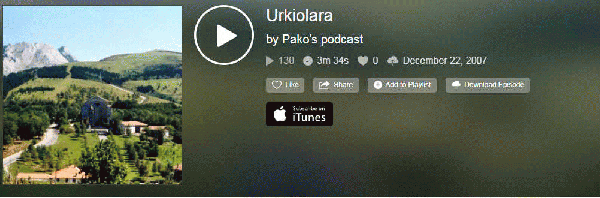 SoinuaSerie(ak): Literatur printzak hitz lauz (Pako Eizagirre)Publication details: [Gasteiz] : Pako Eizagirre, 2007Deskribapen fisikoa: 1 audio (mp3) (4 min) : soinudunaGaia(k): Generoa/Forma:Sareko errekurtsoak:Adina / Maila: Pako Eizagirrek kudeatutako webgune honetan, "literatur printzak" entzun ahalko dira. Podcast laburrak dira euskal idazle ezagunen testuekin: egunkarietako artikuluak, liburuetako pasarteak...