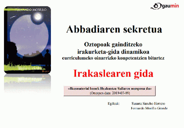 "Abbadiaren sekretua" liburuaren irakurketa-gida dinamikoa. Irakaslearen liburua [Interneteko baliabidea] / egileak, Fernando Morillo Grande eta Susana Sancho Herrero