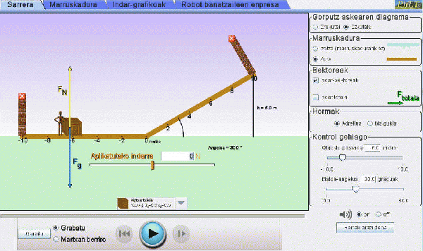 Indarra,energia,lana lantzeko simulazio interaktiboa