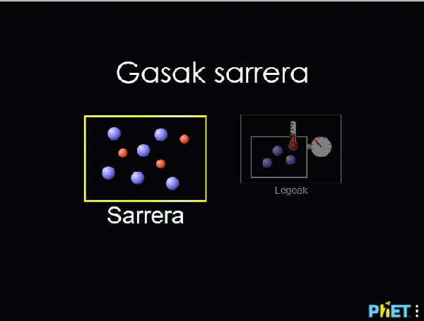 Gasak, preisoa, bolumena ulertzeko simulazio interaktiboa.