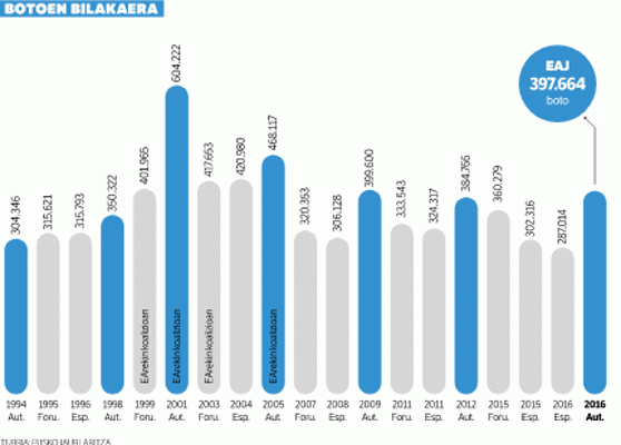 EAJren botoen bilakaera 1994-2016 aldian : Mondarrain [Interneteko baliabidea - Irudia] / Berria egunkaria