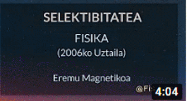 Selektibitatea: eremu magnetikoa (2006ko uztaila) / [Fisikasi] [Interneteko baliabidea - Bideoa]