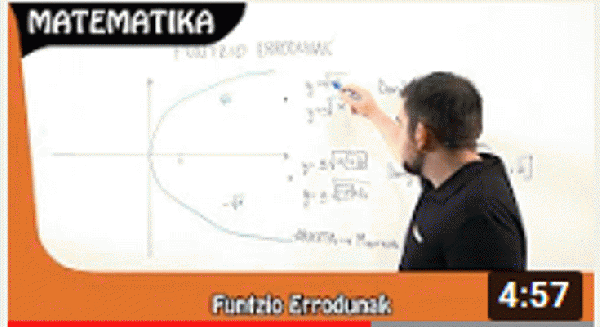 Bideo honetan funtzio errodunen irudikapena ikusiko dugu. Lehendabizi gogoratu erroek bakarrik zenbaki postiboak hartu ditzaketela, beraz beren domeinuak zerotik infinutura doaz, gogoan hartu ere zeroa domeinu horren barne dagoela. Behin hau jakinda X-ri balioak emanda funtzioaren grafikoa atera dezakegu.