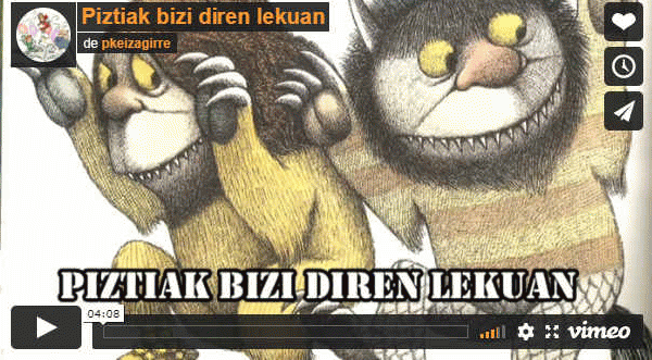 Eima Katalogoa | Haur eta gazteentzako narratiba | INTERNETEKO BALIABIDEA | Ale eskuragarriak | Piztiak bizi diren lekuan from pkeizagirre on Vimeo. |
