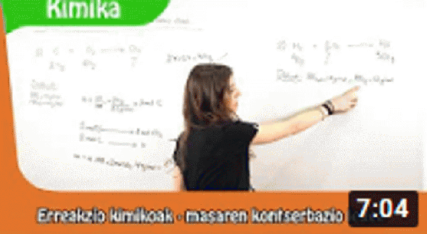 FilmSerie(ak): Jakindun (Youtube kanala)Publication details: Basauri : Jakindun.com, 2021Deskribapen fisikoa: Baliabide elektronikoa (7 min) : soinuduna, kolGaia(k): Generoa/Forma:Sareko errekurtsoak:Adina / Maila: Oraingo honetan, masaren kontserbazio legea erreakzio kimikoetan ikusiko dugu. Masaren kontserbazio legearen arabera, erreaktiboen masa batuketa eta produktuen masa batuketa berdinak izan behar dira. Hau egiaztatzeko lehenik, masa moletara bihurtu behar dugu, gero molen erlazioa egin eta ondoren berriz gramoetara bihurtu. Puntu honetan ikusi ahal izango dugu kontserbazio legea betetzen den ala ez.