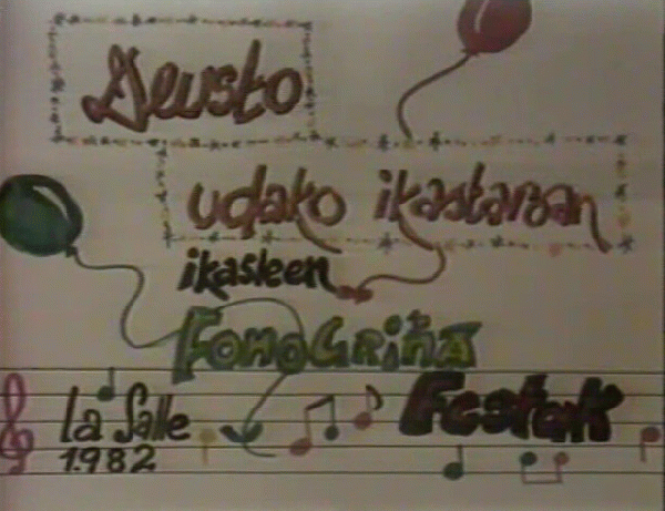 FilmSerie(ak): Fonogrina. Musikatresnen bidezko hezkuntza ; ; XII-158/159 | Haurrak euskalduntzen bideoaren bidez (Hezkuntza Saila) ; ; XII-158/159Publication details: Vitoria-Gasteiz : Eusko Jaurlaritzaren Argitalpen Zerbitzu Nagusia, 1982Deskribapen fisikoa: 1 baliabide elektroniko (ca. 8 min) : soinuduna, kolGaia(k): Generoa/Forma:Sareko errekurtsoak:Adina / Maila: Haurren euskalduntzea laguntzeko helburuarekin, 1982. urtean Hezkuntza Sailak bideo sorta bat ekoiztu zuen Imanol Urbietaran zuzendaritzapean. Bideoetan euskara lantzeko hainbat elementu agertzen dira: ipuinak, marrazkiak, txotxongiloak, abestiak, motrizitatea... Bideo honetan, "Haur txikiak / Zirko festak".