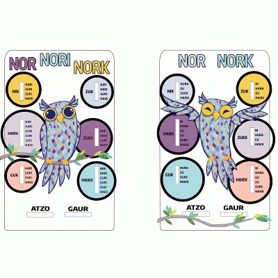 Nor-Nork / Nor-Nori-Nork orainaldian eta iragan aldian lantzeko aditz karta.